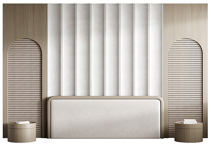 Sakin bir gecenin başlangıcı… Yatak başlıkları, yumuşak dokular ve zarif hatlarla yatak odasına huzurlu bir bütünlük katar.